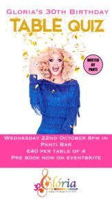 Glória is always grateful for the support of our friends, fans – dare we say – and families. Panti Bliss, part of the family at this stage whether she wants to be or not, has always had our back. This year we, you (!) raised €3,000 on the night which will help with general running costs but particularly with our Archive Project.